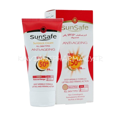 ضد آفتاب سان سیف SPF 50 ضد چروک کرمپودری بژ طبیعی