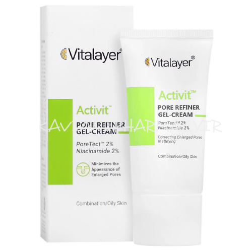 ژل کرم جمع‌کننده منافذ اکتی‌ویت ویتالیر با بافت سبک و فاقد چربی، به کاهش منافذ باز، کنترل چربی پوست و ایجاد ظاهری مات و یکدست کمک می‌کند و گزینه‌ای مناسب برای پوست‌های چرب و مختلط است.